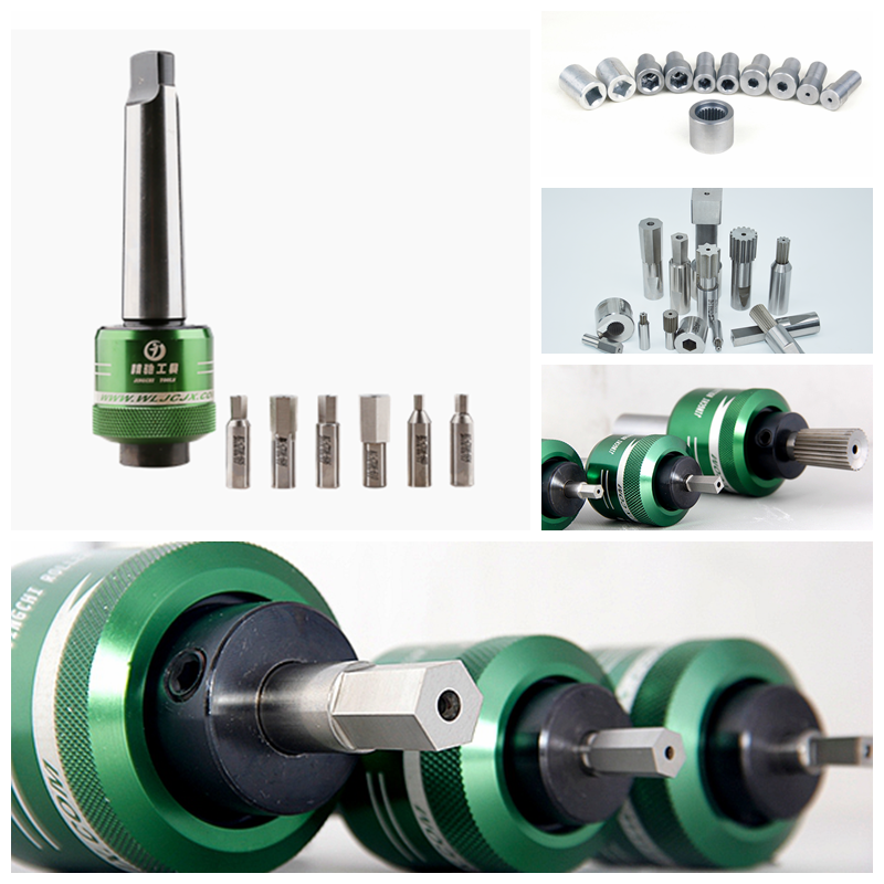 旋轉(zhuǎn)沖削工具是通過(guò)刀具的旋轉(zhuǎn)轉(zhuǎn)化為切削的力而進(jìn)行工作。本公司研制的旋轉(zhuǎn)沖削刀具,是一個(gè)操作簡(jiǎn)單的異形孔加工刀具,本工具適用一般車床、CNC自動(dòng)車床、加工中心、鉆床等設(shè)備,可加工盲孔,通孔有規(guī)則或不規(guī)則的多邊形,除了加工標(biāo)準(zhǔn)的六角、正方孔,也可定制星形、花鍵等其它特殊形狀。